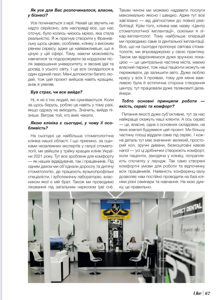 Виграє той, хто вміє чекати: засновник та керівник стоматологічної клініки “Respect Dental” Руслан Савчук 0 By Ірина Стефанюк on 13.06.2023 · Новини, Постійні рубрики журналу Читайте в новому номері Like: Share. Twitter Facebook Google+ Pinterest LinkedIn Tumblr Email