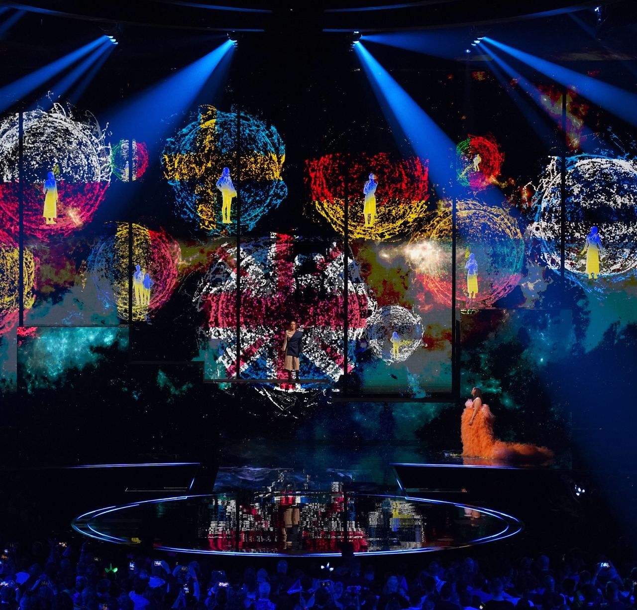 Визначальним моментом стала поява на екранах прапорів країн, які підтримують Україну в війні. Вони об’єдналися у велике синьо-жовте українське серце, яке тримає один ритм.