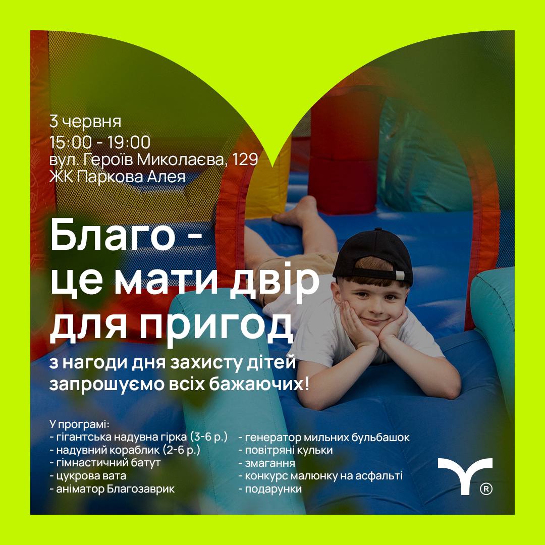 З нагоди дня захисту дітей blago developer запрошує всіх охочих на захоплююче дитяче свято “Благо – це мати двір для пригод”.