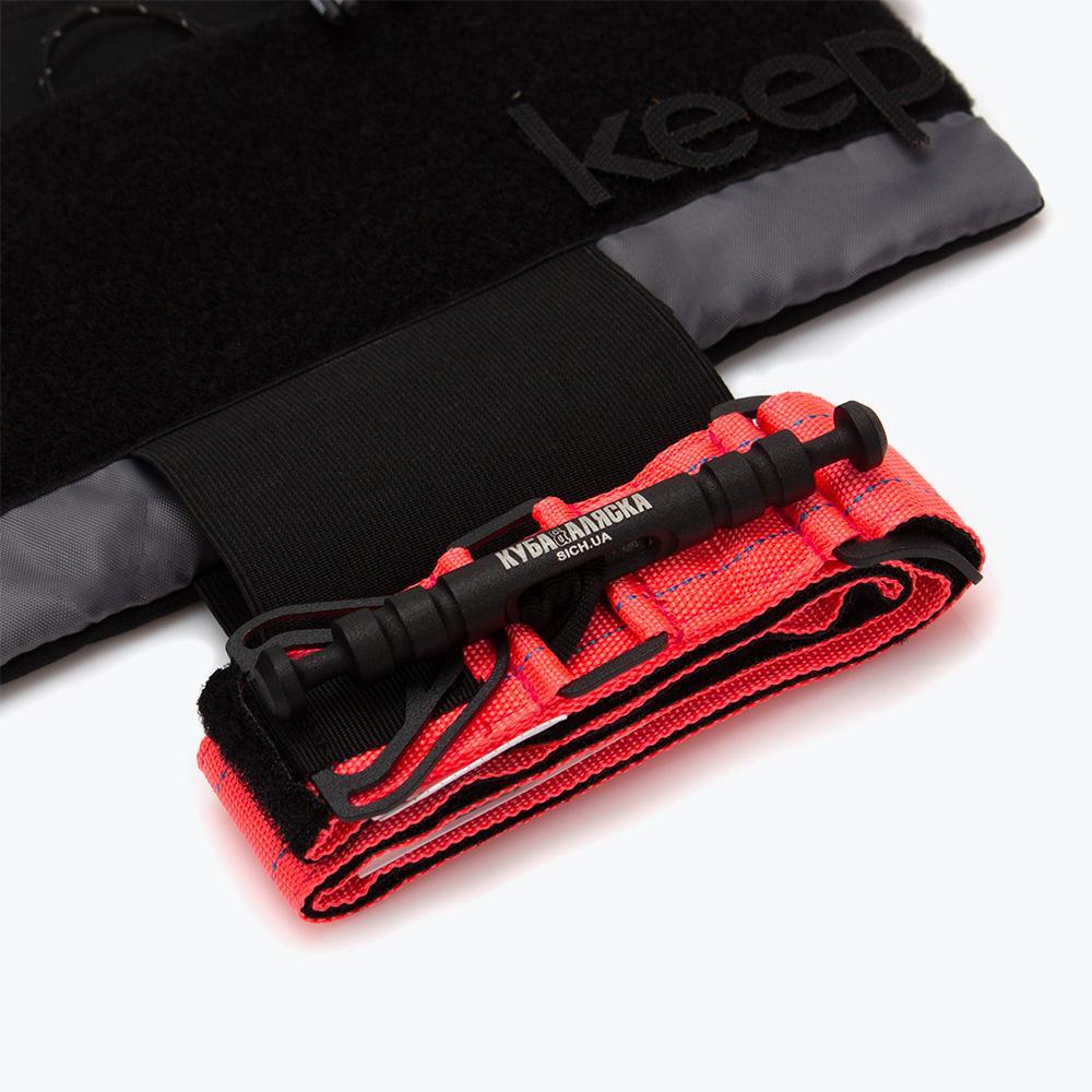 Особливістю сумки «Care Kit» є кріплення для турнікету та вкладений сертифікований турнікет українського виробника SICH. Завдяки цьому повсякденний аксесуар перетворюється на жест турботи про себе та ближнього, аби в разі потреби врятуватися і рятувати. Соціально важлива ініціатива бренду keep® у колаборації з першою та єдиною в Україні спільнотою жінок із бойовим досвідом VETERANKA й командою фільму «Куба & Аляска» — це маніфест порятунку життів на передовій та у тилових умовах. Із закликом до українського суспільства в сьогоднішніх реаліях війни пам’ятати про важливе.