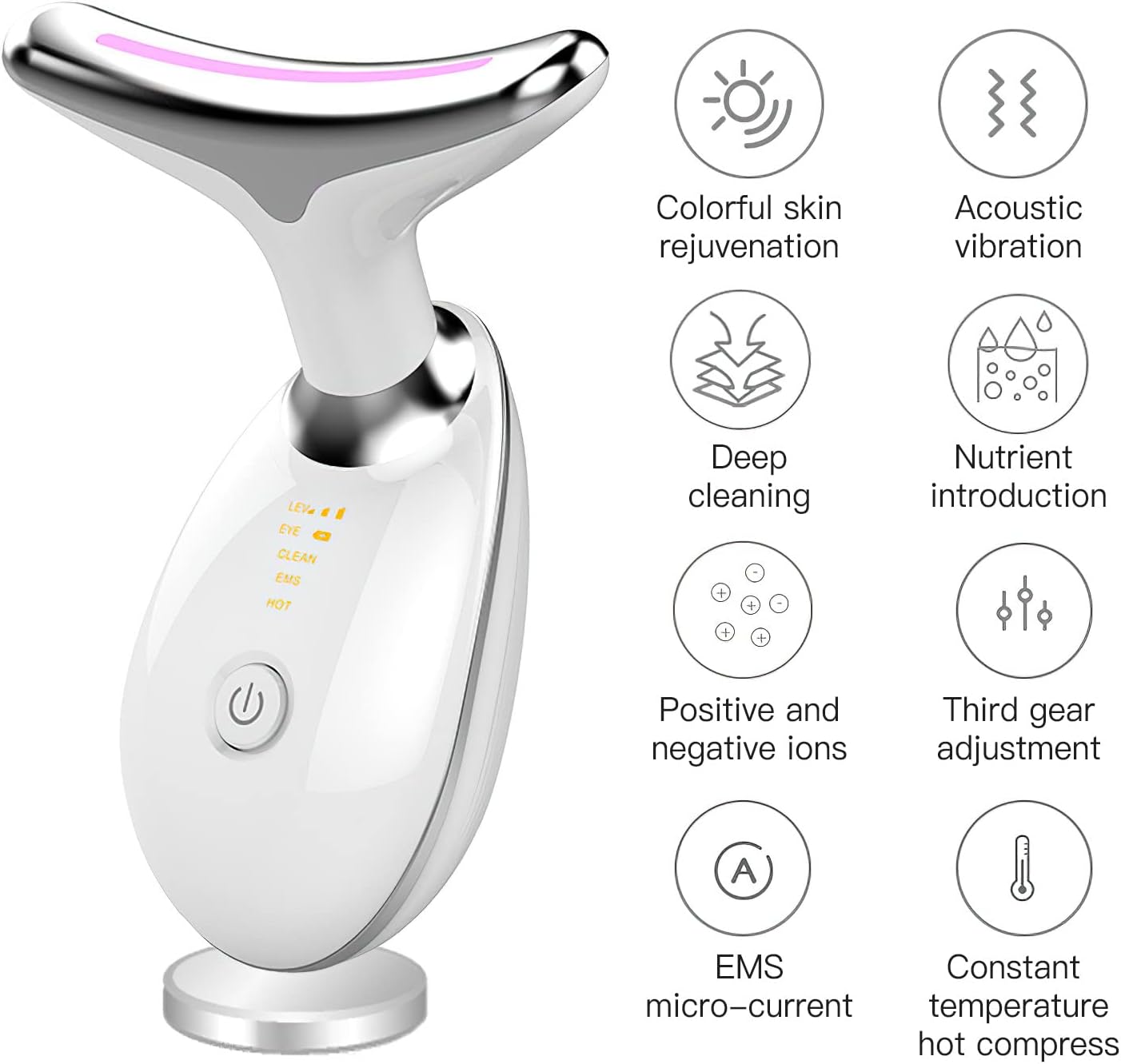 Цей пристрій використовує технологію EMS для тонізації та підтягування м’язів обличчя, надаючи ефект ліфтингу без ін’єкцій. Він має три режими для обробки різних зон обличчя, покращує кровообіг та стимулює вироблення колагену, що сприяє зменшенню дрібних зморщок.