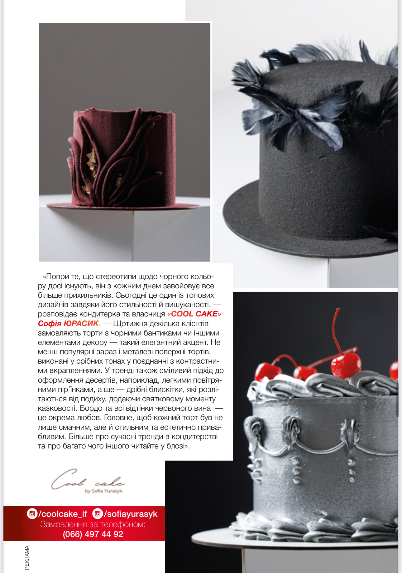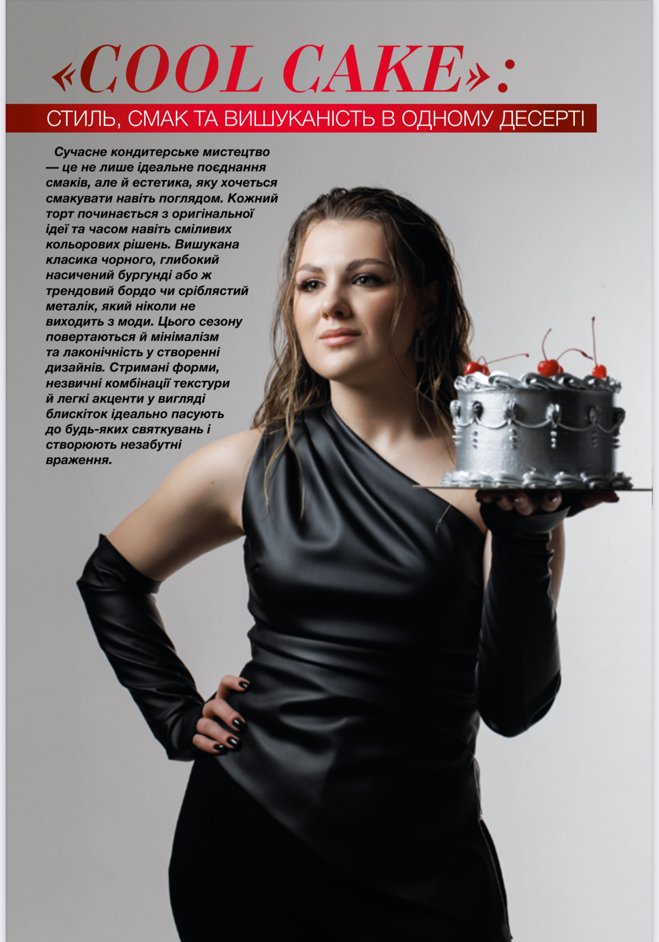Сучасне кондитерське мистецтво — це не лише ідеальне поєднання смаків, але й естетика, яку хочеться смакувати навіть поглядом. Кожний торт починається з оригінальної ідеї  та часом навіть сміливих кольорових рішень. Вишукана класика чорного, глибокий насичений бургунді або ж трендовий бордо чи сріблястий металік, який ніколи не виходить з моди. Цього сезону повертаються й мінімалізм та лаконічність у створенні дизайнів. Стримані форми, незвичні комбінації текстури й легкі акценти у вигляді блискіток ідеально пасують до будь-яких святкувань і створюють незабутні враження.