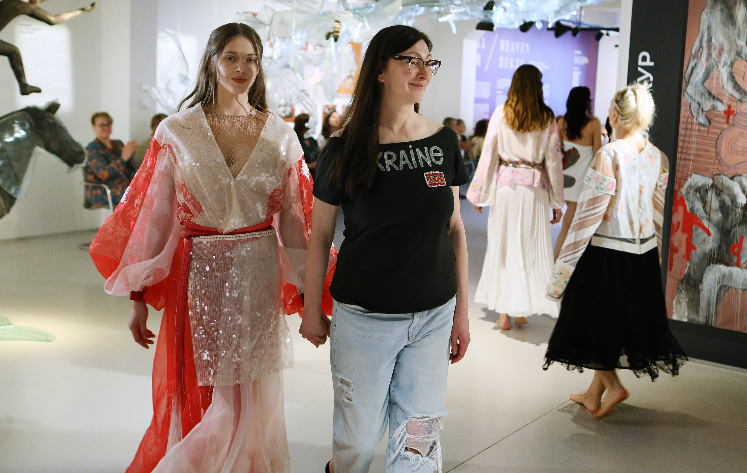Фешн-перформанс «Дюрер. Янголи. Спокусниці» – це навіть не дійство, а ритуал. Сам одяг від кутюр Караванської перегукується з містичною українською традицією. Авторка епатажних вишивок – Ксенія Уманська. Образи, інтегровані у простір, промовляли, відчували… При глядачах – перших і єдиних свідках цієї живої розмови.