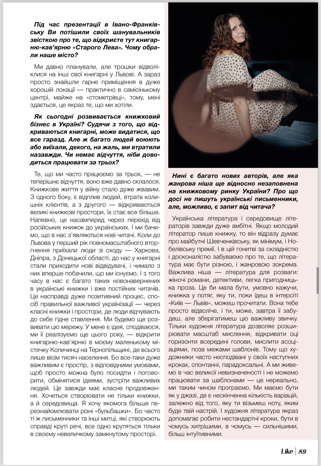 Як вдається поєднувати різні види діяльності та яку роль у побудові майбутнього відіграють книжки — в ексклюзивному інтервʼю для журналу Like.