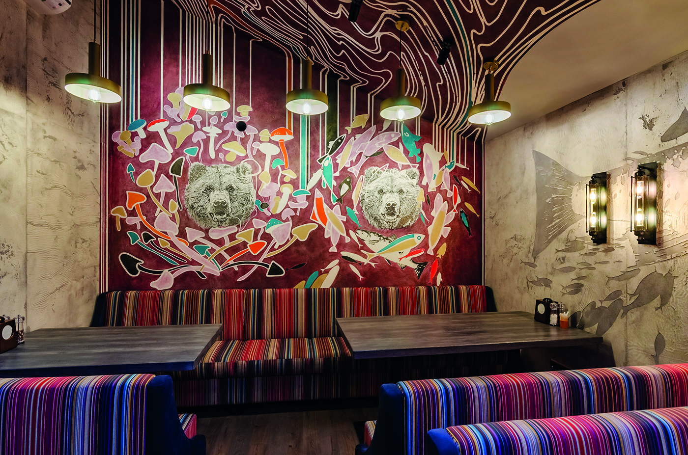Це я свідомо роблю. 25 років тому мода на мінімалізм була, а український інтер’єр все-таки заповнений, забитий. І навіть якщо ми робимо мінімалізм, такий наш гуцульський, то все одно виходить максималізм. Бо якщо це розсипані афини, то їх просто «дофіга» і вони нібито маленькі, але насправді там тисяча крупинок. А в темі етнічній, то це взагалі дуже пряма історія. Ми так робили японський ресторан у Франківську – з сакурами і смереками, ієрогліфами, але чітким нашим «посилом». Я б хотів, наприклад, приїхавши в Японію, побачити гуцульський ресторан не просто з наповненням, привезеним десь з косівського базару, а щоб сам японець включився і спробував якось прив’язати нашу Гуцульщину до своєї Японщини.