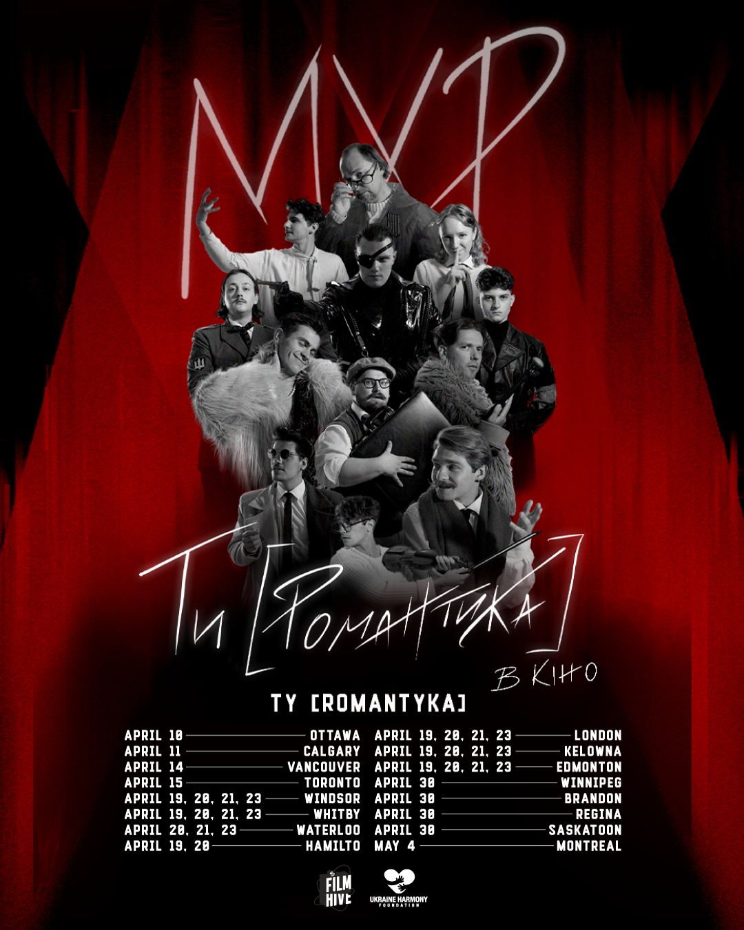 Покази «МУР. Ти [Романтика] в кіно» стартують з Оттави і Калґарі та завершаться у травні в Монреалі. Дивіться повний перелік показів та міст: