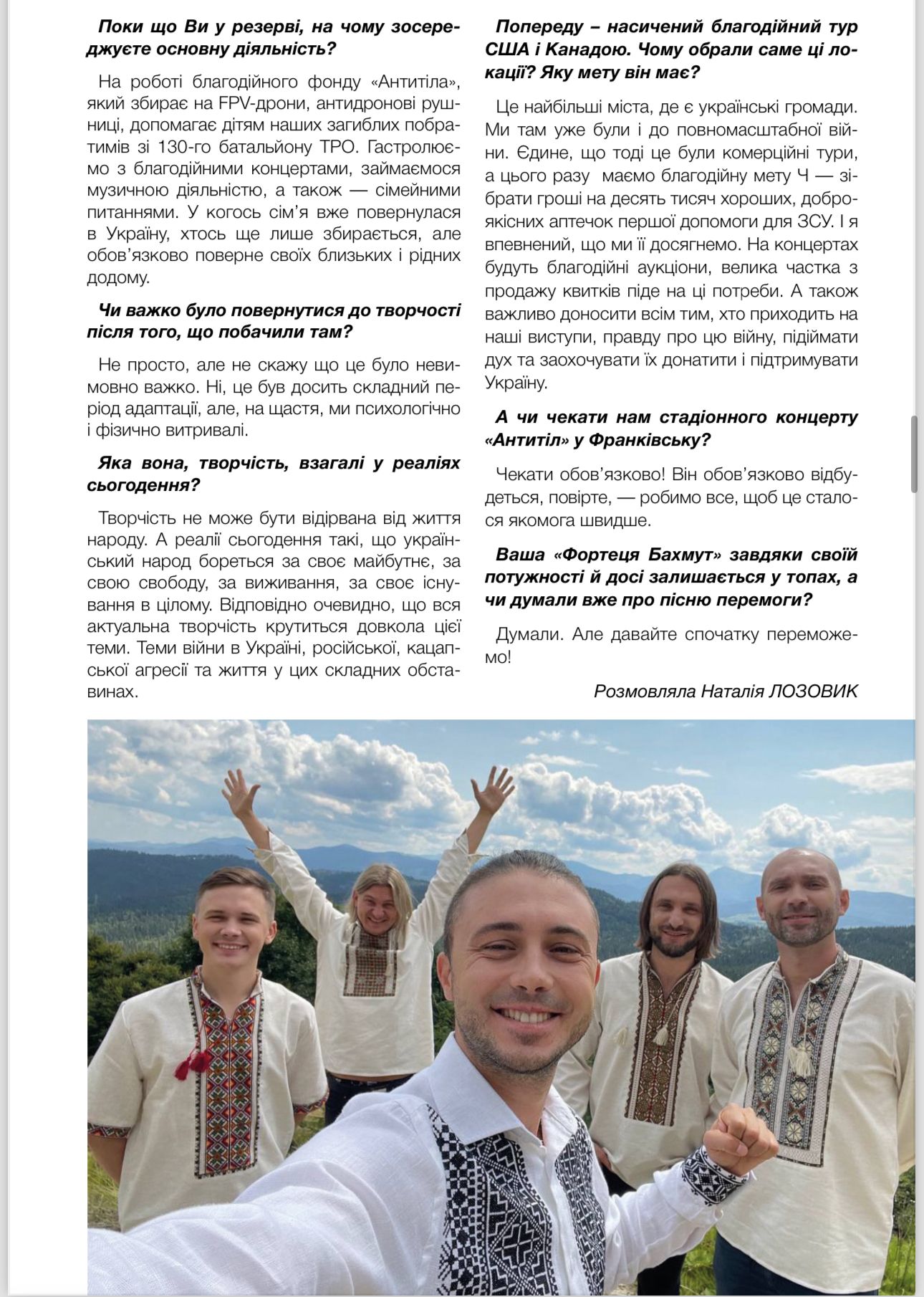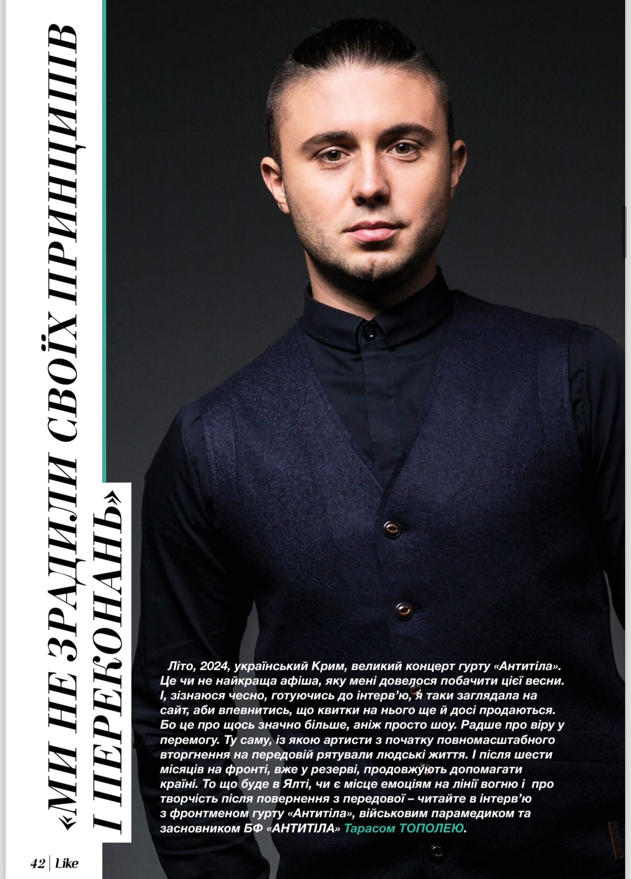 «Ми не зрадили своїх принципів і переконань»: інтервʼю з фронтменом гурту «Антитіла» Тарасом Тополею 0 By Ірина Стефанюк on 17.10.2023 · Новини Читайте в новому номері Like: Share. Twitter Facebook Google+ Pinterest LinkedIn Tumblr Email