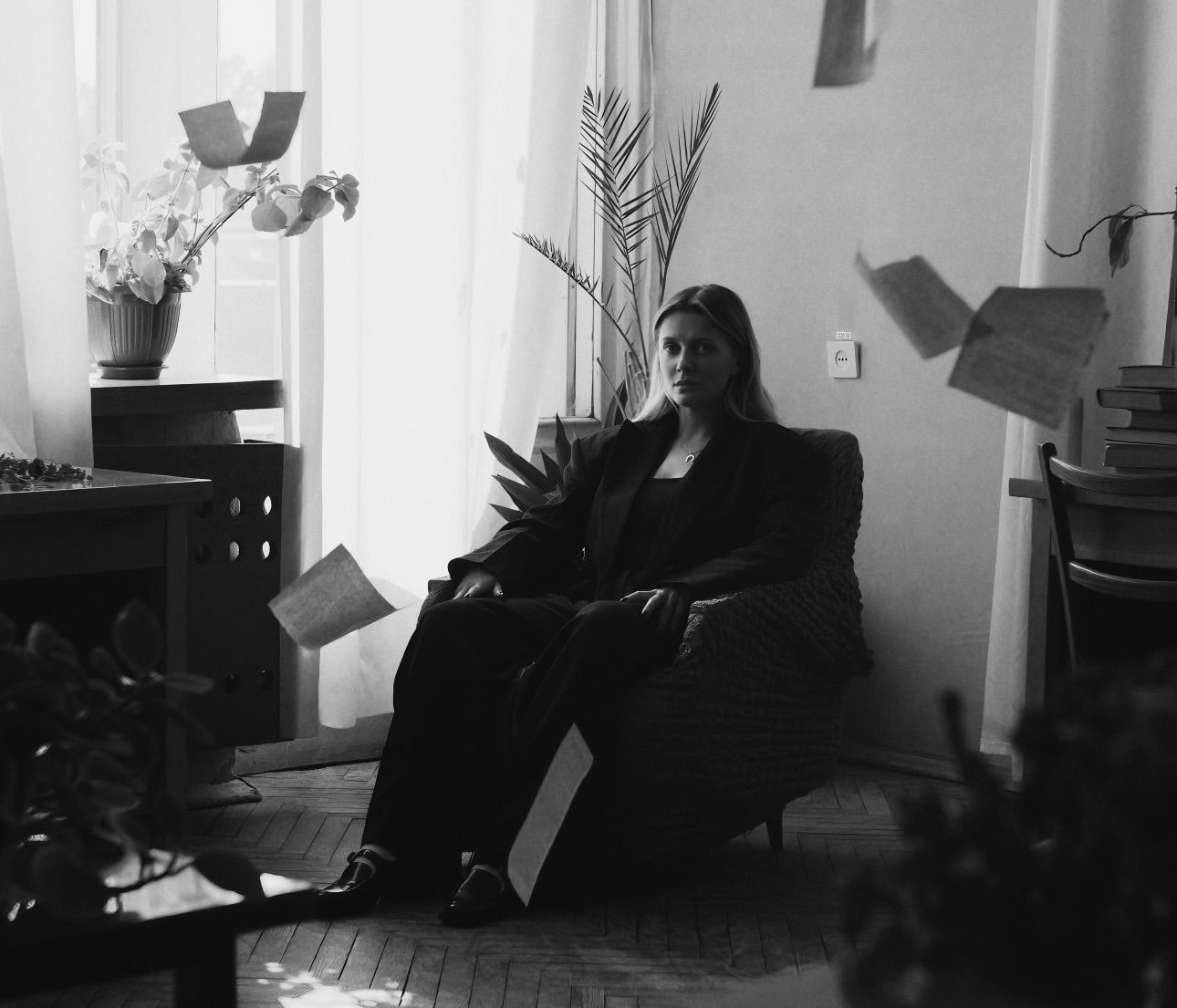Артем Пивоваров як автор, що прагне відроджувати та популяризувати нашу культурну спадщину, даючи нове дихання творам видатних представників української літератури, виступає в ролі оповідача. Він та KOLA живуть у різних часових межах: вона – в теперішньому, він – подорожує різними часовими проміжками. Люди в чорному – відлуння минулого, джерела творчості, що живе поза часом. Книга в цій історії є уособленням будь-якої праці, що зрештою стає нашим надбанням. Пращури залишили нам багато скарбів, які важливо не загубити, а іноді й віднайти, як це робить героїня KOLA.