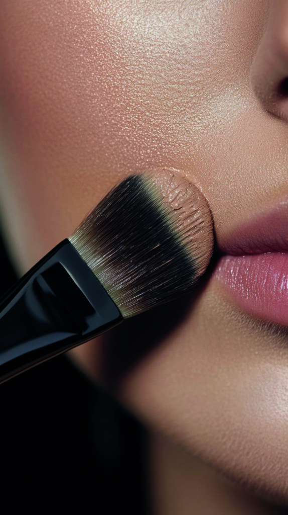 Наносьте тон пензлем-дуофайбером або спонжем, промочуючи, але не розтираючи. Мета такого способу нанесення — не приховати недоліки шкіри, а зробити її «живою». Якщо потрібно замаскувати недоліки, — скористайтеся точково консилером.