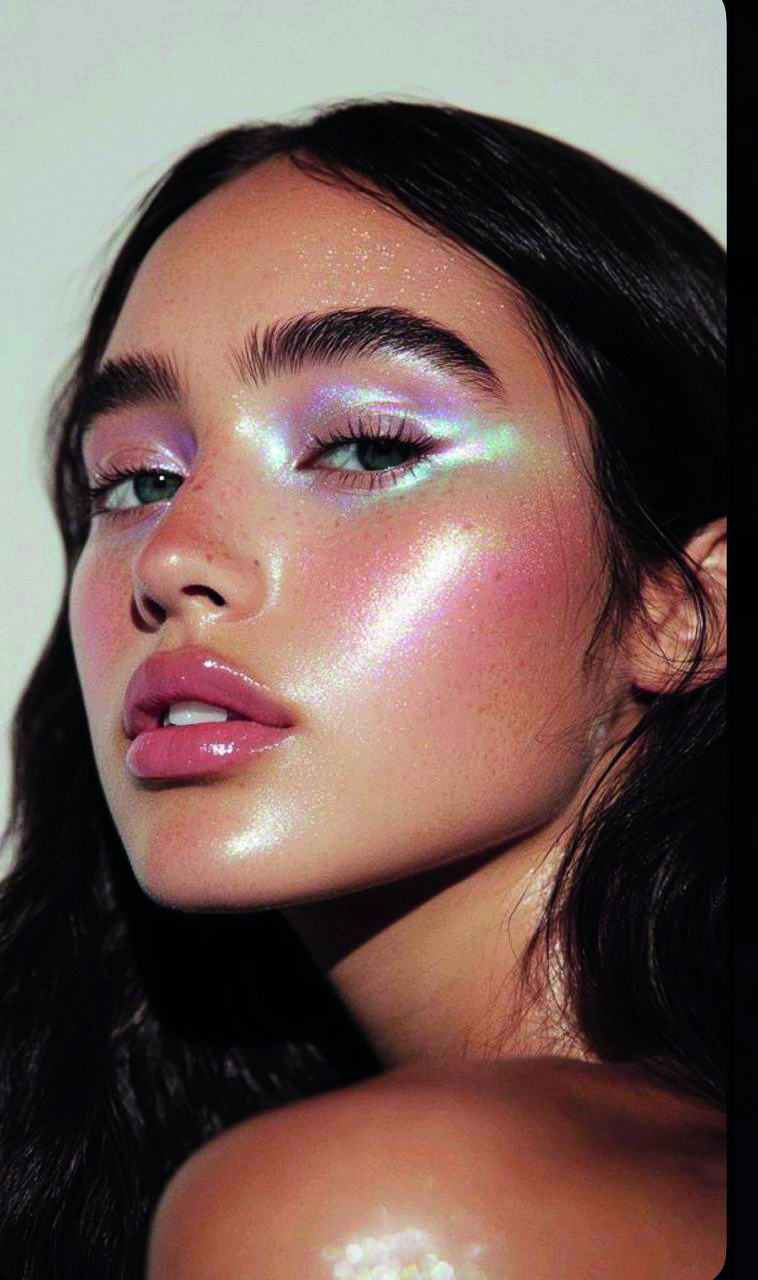 Трендовий акцент сезону — це «frosty glow» — ефект, ніби ви щойно вийшли на мороз, а ваше обличчя осяяне природним світлом. Для цього оберіть хайлайтер із легким сріблясто-рожевим відтінком.