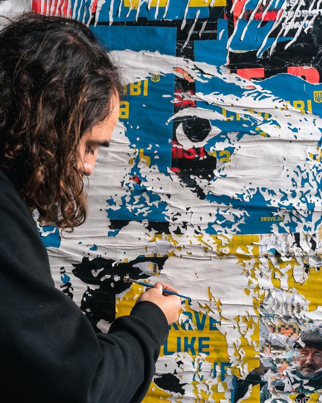 «Свого часу я зустрівся з сім’єю Сергія Нігояна та був зворушений його історією. Він став першим, хто загинув на Майдані, який боровся за свободу та гідність. І я досі пам’ятаю свої враження від локації, яку вибрали для муралу з Сергієм. Тому мені захотілося продовжити пам’ять про нього і створити ще один його портрет, цього разу з плакатів, які створювали, щоб підтримати дух українців. Це теж видається мені дуже символічним».