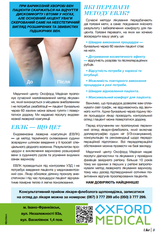 ПОЗБУТИСЯ ВАРИКОЗУ ЗА60 ХВИЛИН, АБО СУЧАСНІ ЛАЗЕРНІ МЕТОДИ ЛІКУВАННЯ В ОКСФОРД МЕДІКАЛ