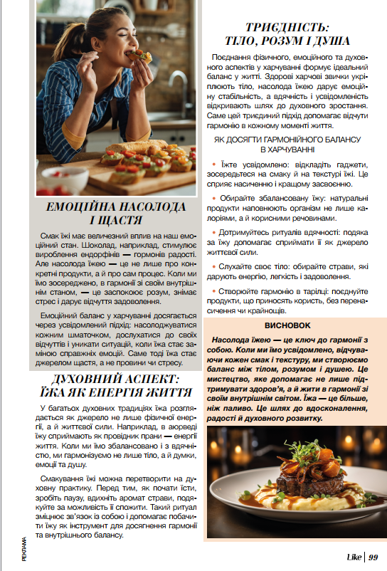 Насолода їжею — це більше, ніж просто смакування страв. Це багатогранний процес, який об’єднує фізичне здоров’я, емоційний комфорт і духовний розвиток, утворюючи гармонійний баланс у нашому житті. Уявіть, як ви їсте улюблену страву: смак розкривається поступово, наповнюючи тіло енергією, заспокоюючи розум і пробуджуючи вдячність за кожен момент. Як ця насолода впливає на наше життя? І чи може вона стати джерелом гармонії?