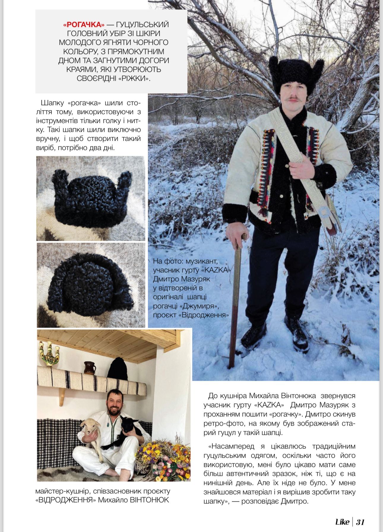Влітку гуцули носили капелюх, кресаню (баршівку), а взимку одягали «рогату шапку». При лютих морозах краї «рогачки» розкочували донизу. На жаль, сучасні аналоги втратили таку особливість, тепер шиють здебільшого «обманки». Майстрові-кушніру Михайлові Вінтонюку вдалося відтворити в оригіналі шапку рогачку — джумирю.