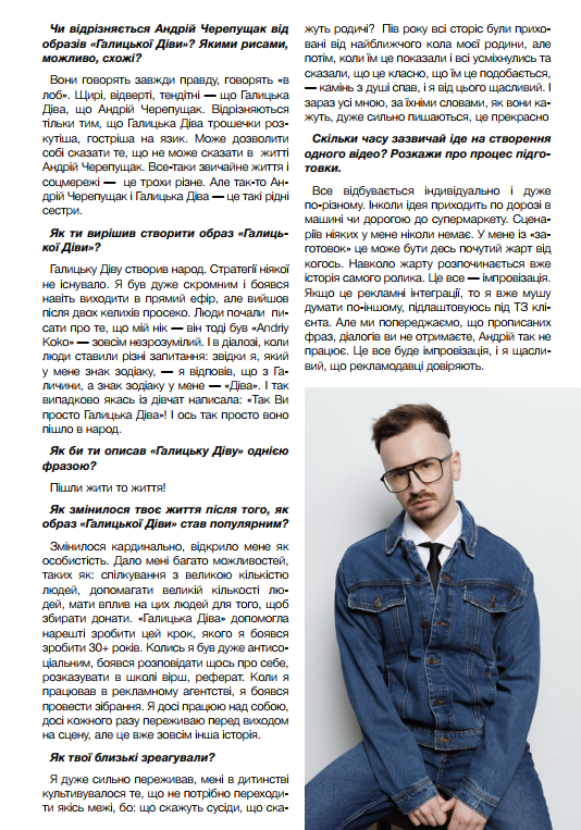 Андрій Черепущак, відомий як «Галицька Діва», підкорив мережу своєю харизмою та гумором. Його образ — це не лише гумор, а й емоційна підтримка. Потрапляєш на його відео — і «йдеш жити то життя». Як з’явилася «Галицька Діва», як впливає образ на особисте життя, табу в гуморі та чи планує Андрій вийти за межі соцмереж, наприклад, у стендап? Про це читайте в ексклюзивному інтерв’ю з Андрієм ЧЕРЕПУЩАКОМ.