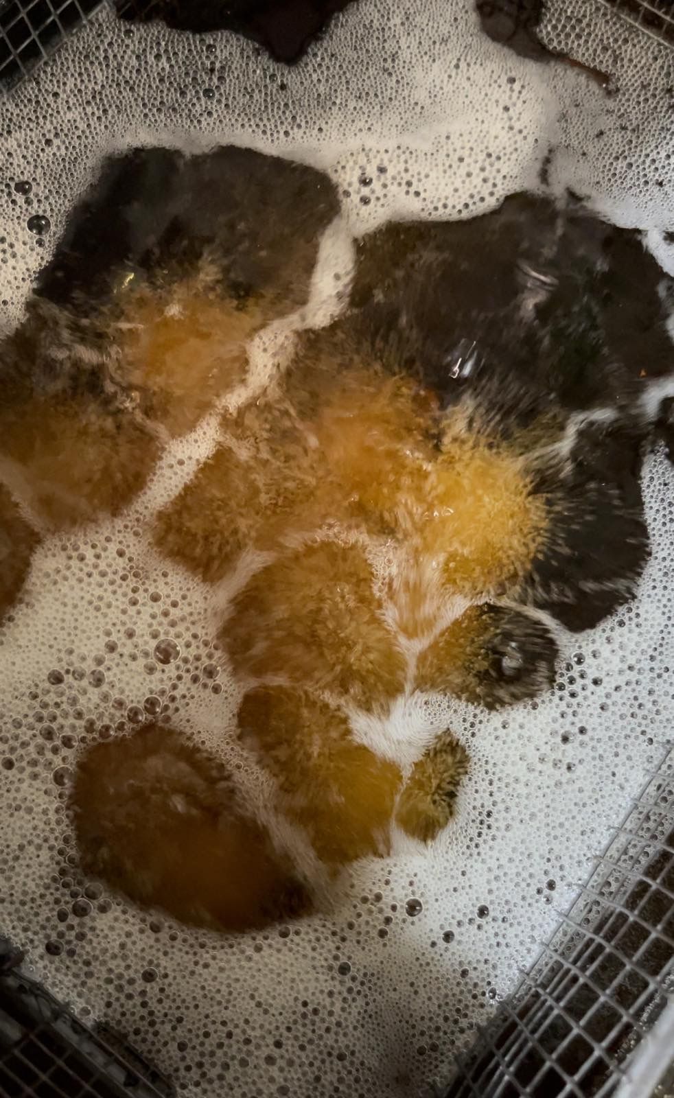Можна готувати у фритюрі або будь якій посудині з олією, щоб кульки повністю занурювались в олію.