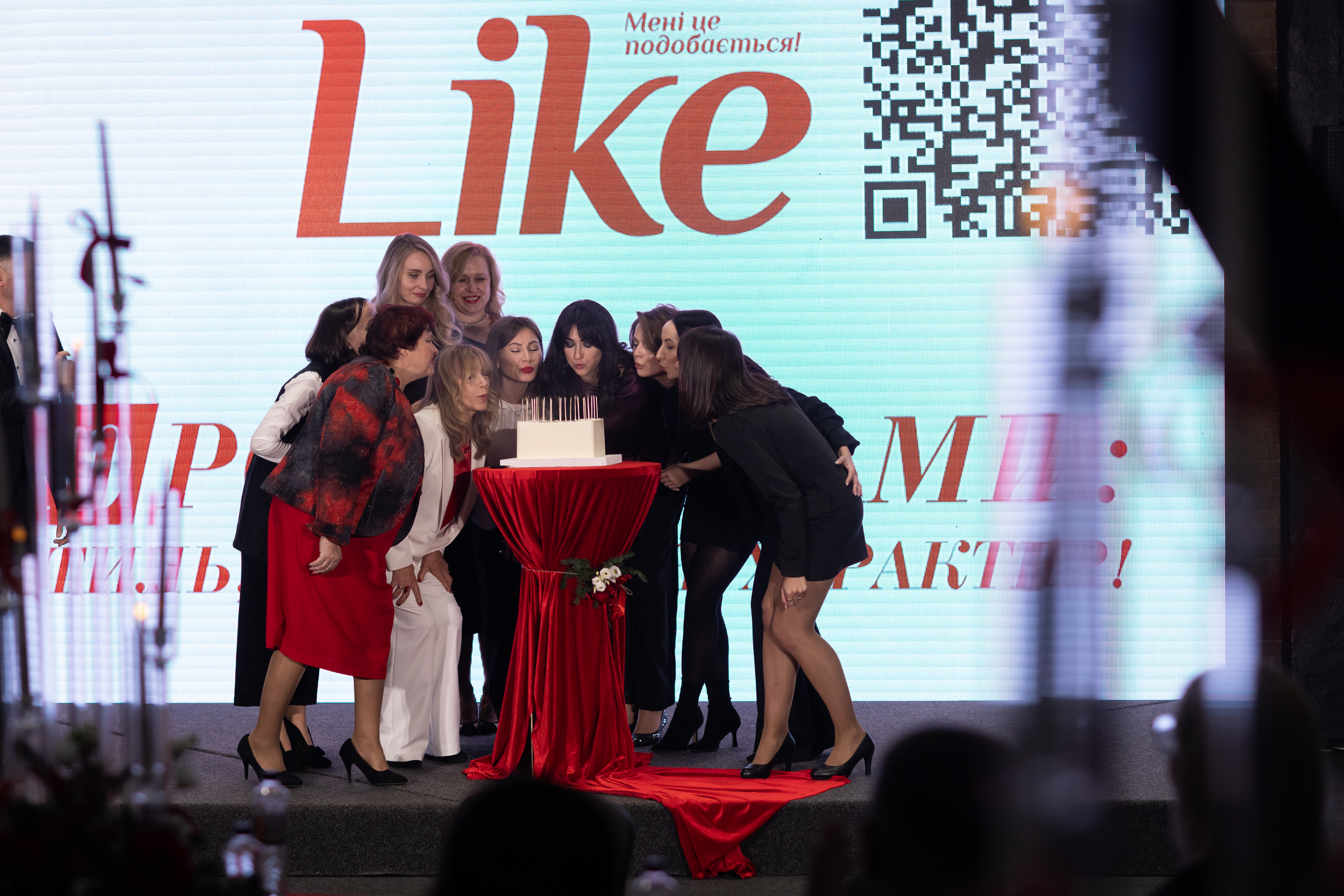 Ювілейний вечір завершився символічною подією – команда Like разом задула свічки на величезному святковому “Торті Перемоги”. Цей момент став нагадуванням, що кожен із нас є частиною великої спільноти, яка працює заради перемоги України.