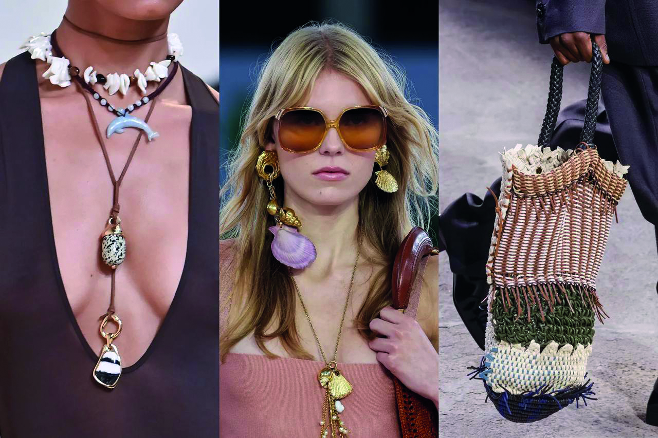 У багатьох колекціях цієї весни можна помітити морські мотиви: позолочені морські ракушки від Chloé, перлинні намиста від Zimmermann, каскадні перли від Ralph Lauren, морські прикраси, прикраси у вигляді устриць, ткані рибальські сумки від Bottega Veneta. Врешті-решт, коли життя стає важким, можна завжди втекти на пляж. Незалежно від того, чи обираєте ви бохо-стиль, чи більш пляжний образ — ці аксесуари чудово доповнять ваш гардероб.