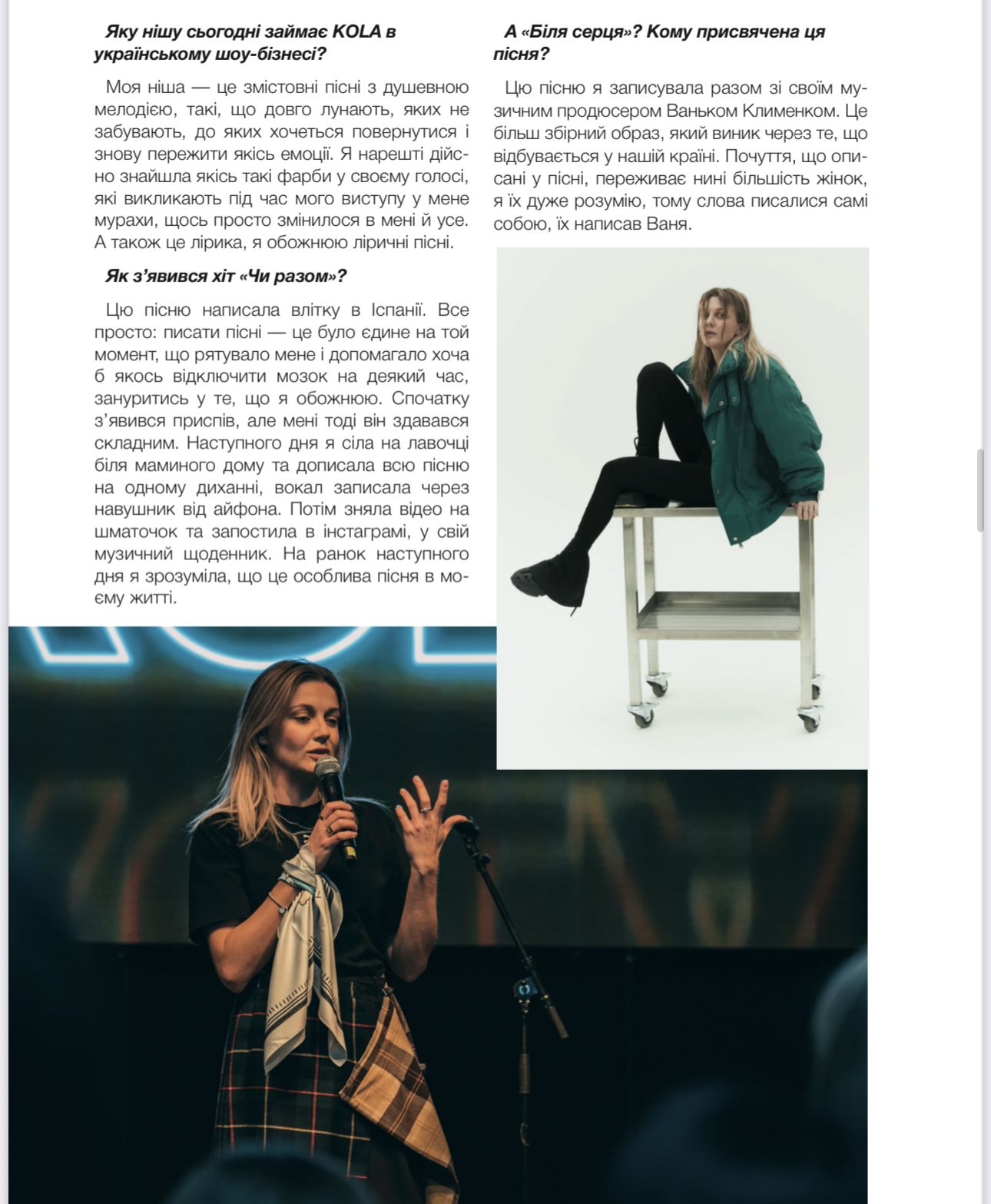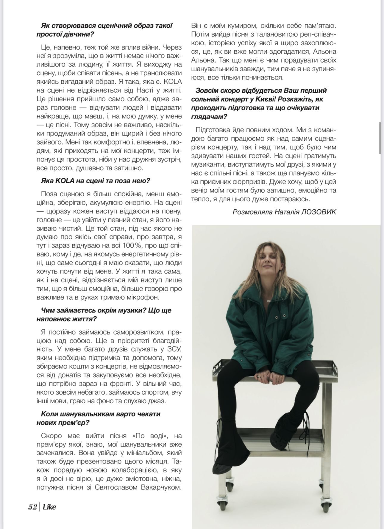 “Те, що біля серця…”: ексклюзивне інтерв’ю з KOLA 0 By Ірина Стефанюк on 19.06.2023 · Новини Про те, чому справжня популярність прийшла саме зараз, що криється за її сценічним ім’ям та чим, окрім музики, наповнює своє життя, – читайте в інтерв’ю для журналу LIKE! Share. Twitter Facebook Google+ Pinterest LinkedIn Tumblr Email