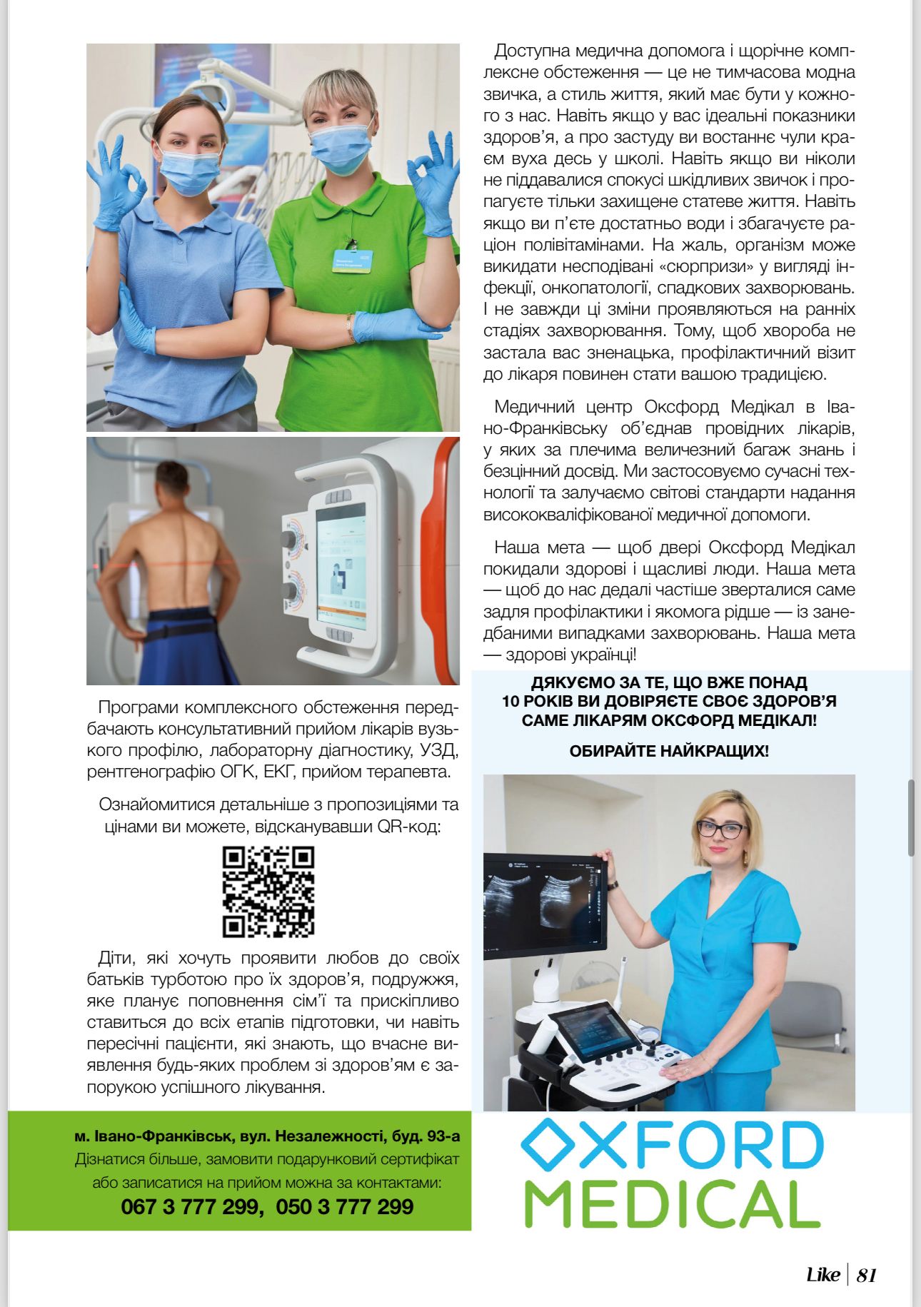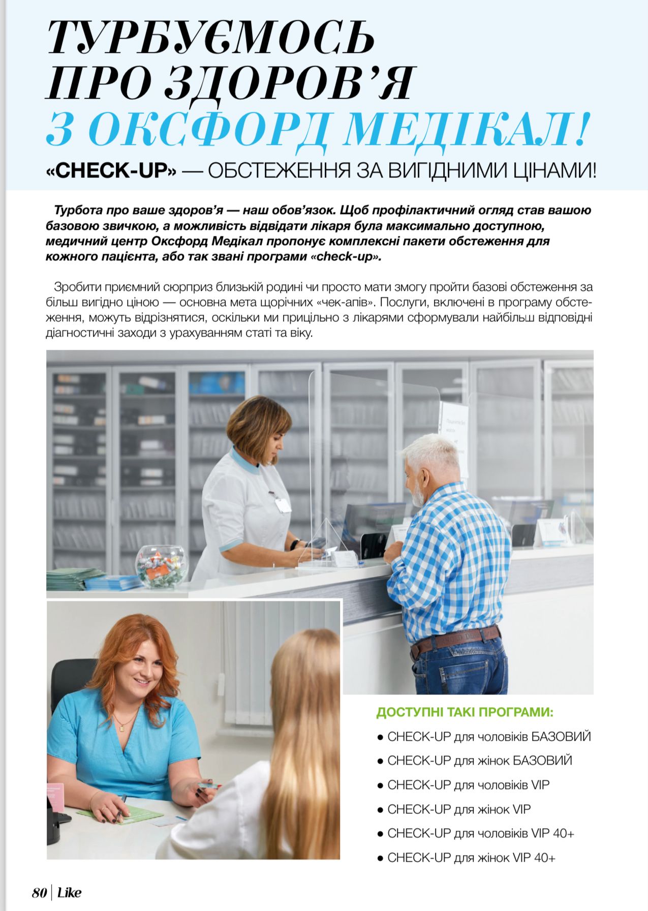 Турбота про ваше здоровʼя — наш обовʼязок. Щоб профілактичний огляд став вашою базовою звичкою, а можливість відвідати лікаря була максимально доступною, медичний центр Оксфорд Медікал пропонує комплексні пакети обстеження для кожного пацієнта, або так звані програми «check-up».