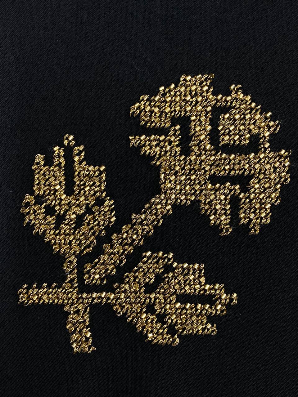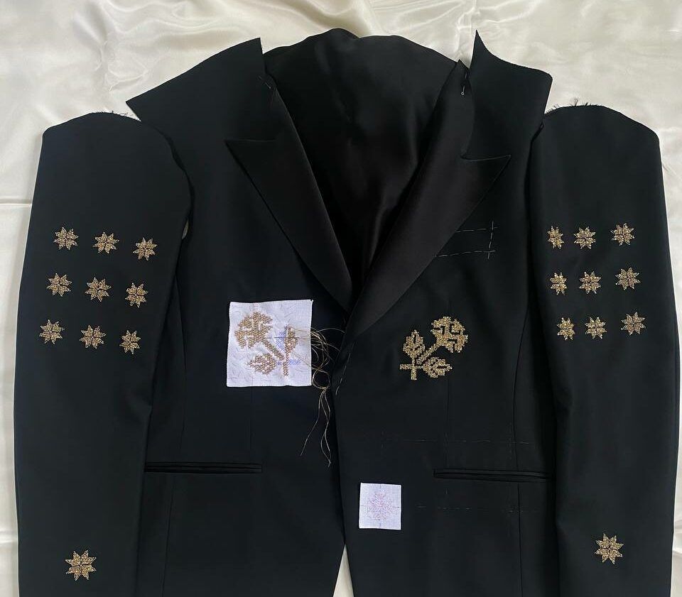 Бренд LUVi багато працює з українською вишивкою, тому вони запропонували стилістці оздоблення піджака на основі Борщівської вишивки. Вирішили зробити вишивку напівхрестом, золотим мікростеклярусом по чорному. Щоб візерунок мерехтів, використовували люрексову нитку та бісер. Робота зайняла у двох вишивальниць два тижні. Спілкувалися зі стилісткою вони виключно в онлайн-режимі, за допомогою Zoom-дзвінків та фотографій. Примірку не проводили. Цей піджак Грем Нортон одягнув у другому півфіналі “Євробачення”, який пройшов у четвер, 11 травня.