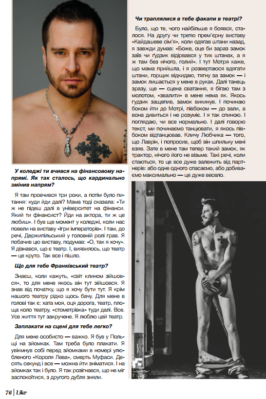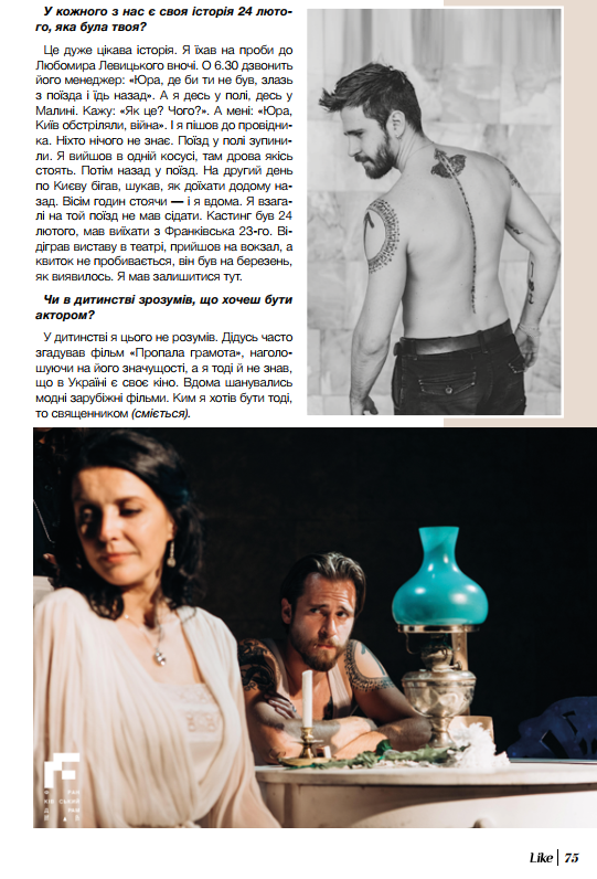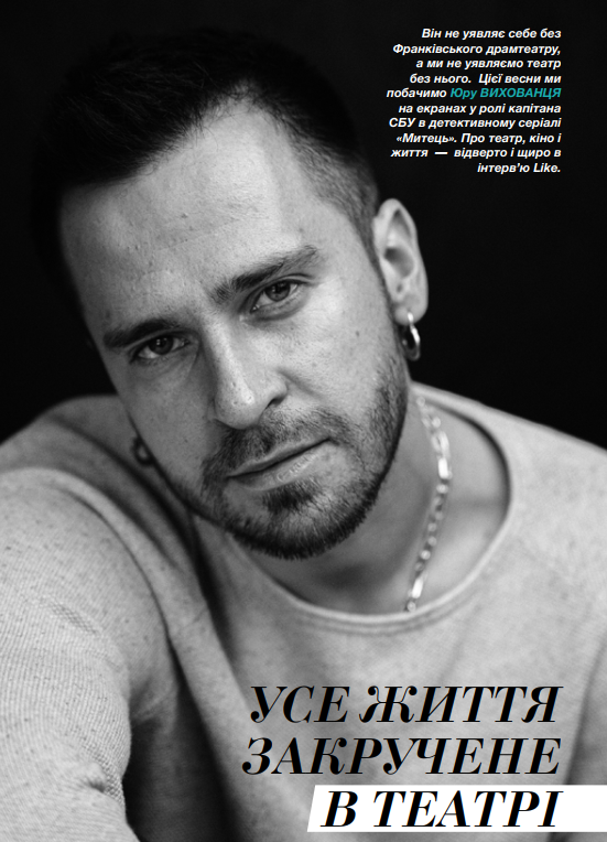 Він не уявляє себе без Франківського драмтеатру, а ми не уявляємо театр без нього. Цієї весни ми побачимо Юру ВИХОВАНЦЯ на екранах у ролі капітана СБУ в детективному серіалі «Митець». Про театр, кіно і життя — відверто і щиро в інтерв’ю Like.