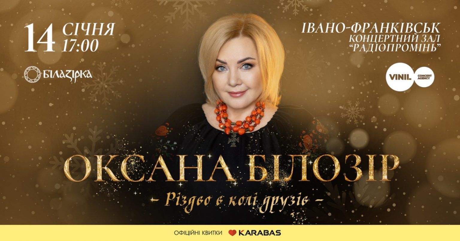 Квитки: https://vinil.agency/events/oxana-bilozir-rizdwo-w-koli-druziw-started-on-01-14-2024