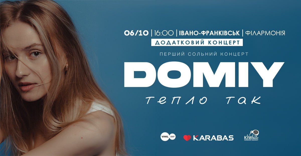 “У ніжний та ліричний голос DOMIY не можливо не закохатися, адже він закарбовується в серці з перших нот! Приходьте та переконайтеся у цьому наживо самі. На вас чекає незабутня атмосфера, зіркові гості та музика, яка лунає прямо з серця! Буде “тепло так”…”, – запрошують у концертній агенції.