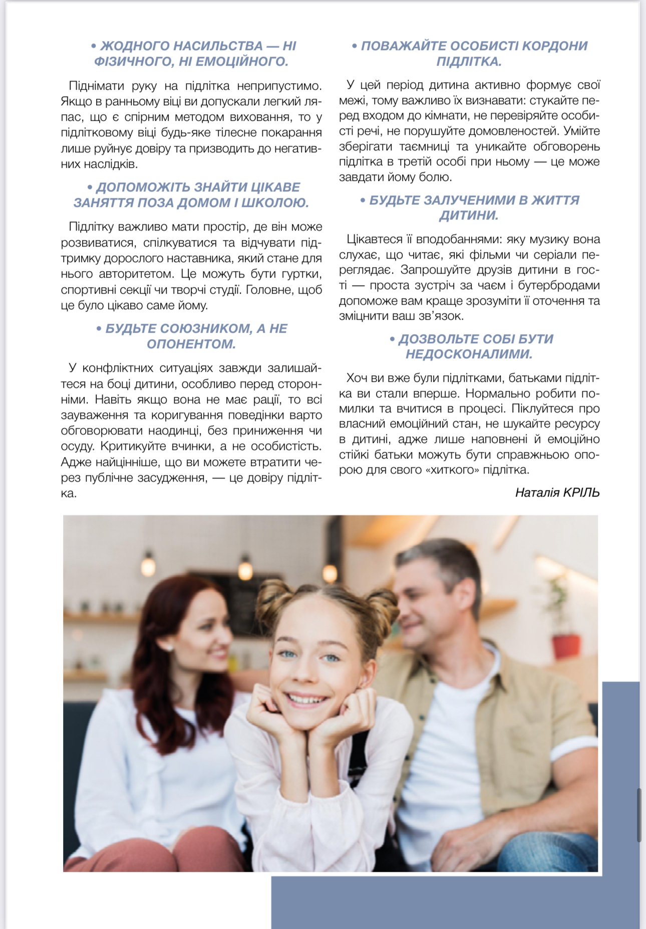Дитині нелегко пережити період між дитинством і зрілістю. Не легше й батькам: у цей час ми нерідко сприймаємо підлітків як диваків, ставимося до цього періоду в житті насторожено і навіть з побоюванням. Всім у сім’ї треба звикнути до нових правил взаємодії. Чому так відбувається?