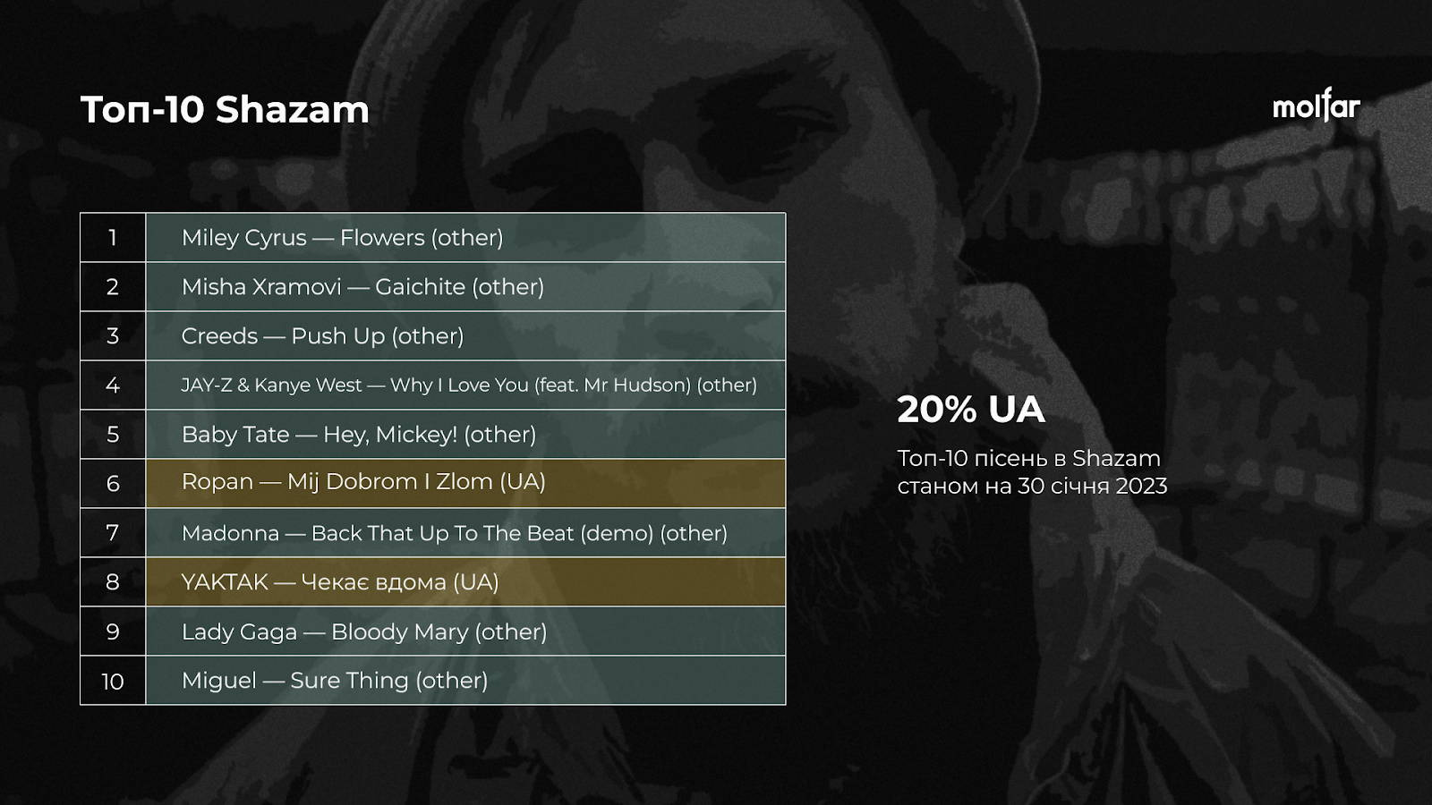 Molfar провела дослідження про те, як змінилися музичні вподобання українців протягом повномасштабної війни.