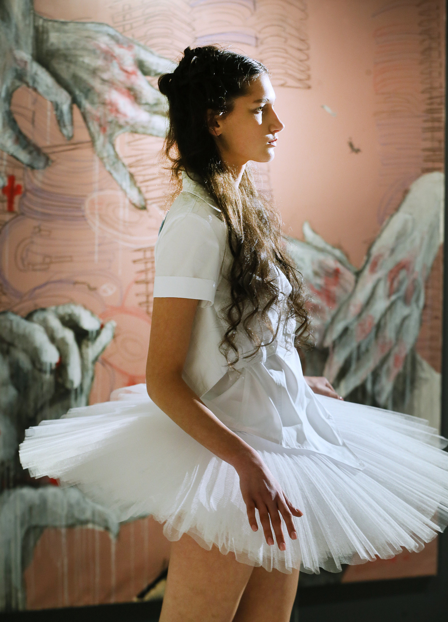 Біле і чорне. Усе починається не зі світла чи темряви. Початок – це роздвоєння: біле і чорне йдуть поруч, бо існування одного без іншого неможливе. “Ми не боїмося чорного, – тлумачить Караванська. – Мереживо на тілі – як тріщина в броні. Як броня, що ховає рани на серці. А білий – це не завжди про чистоту. Іноді це про мрію бути чистою, про мрію бути ангелом. А ангельське терпіння інколи потребує диявольської сили”.