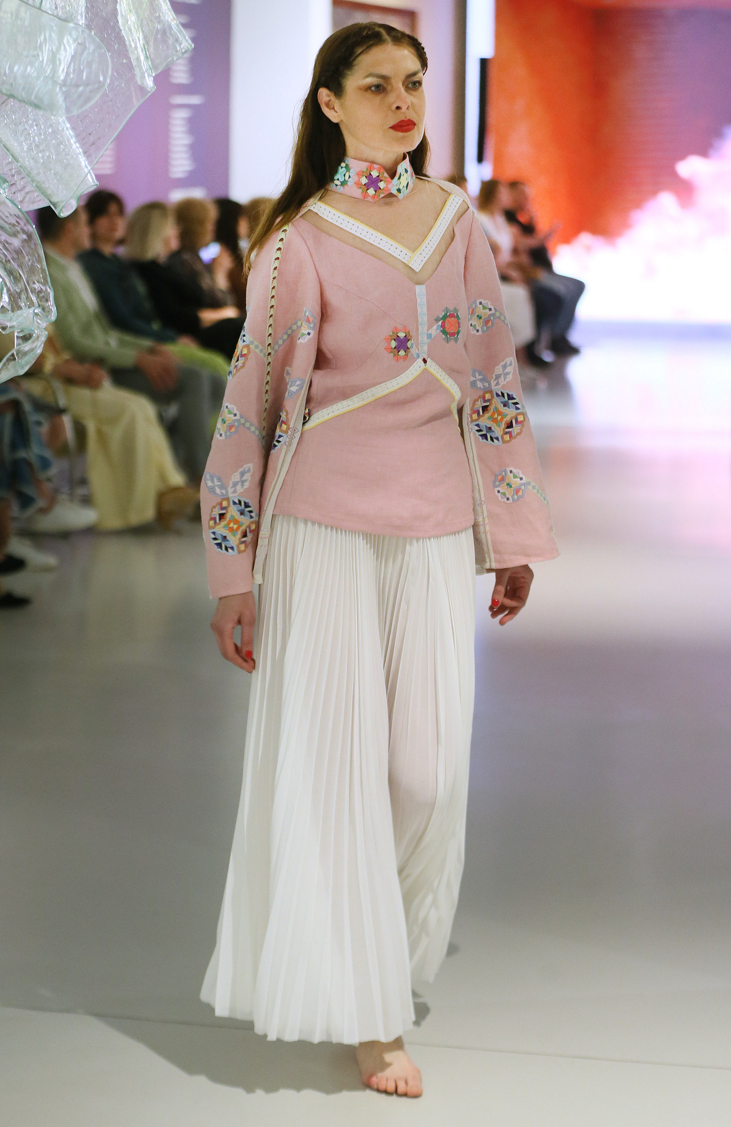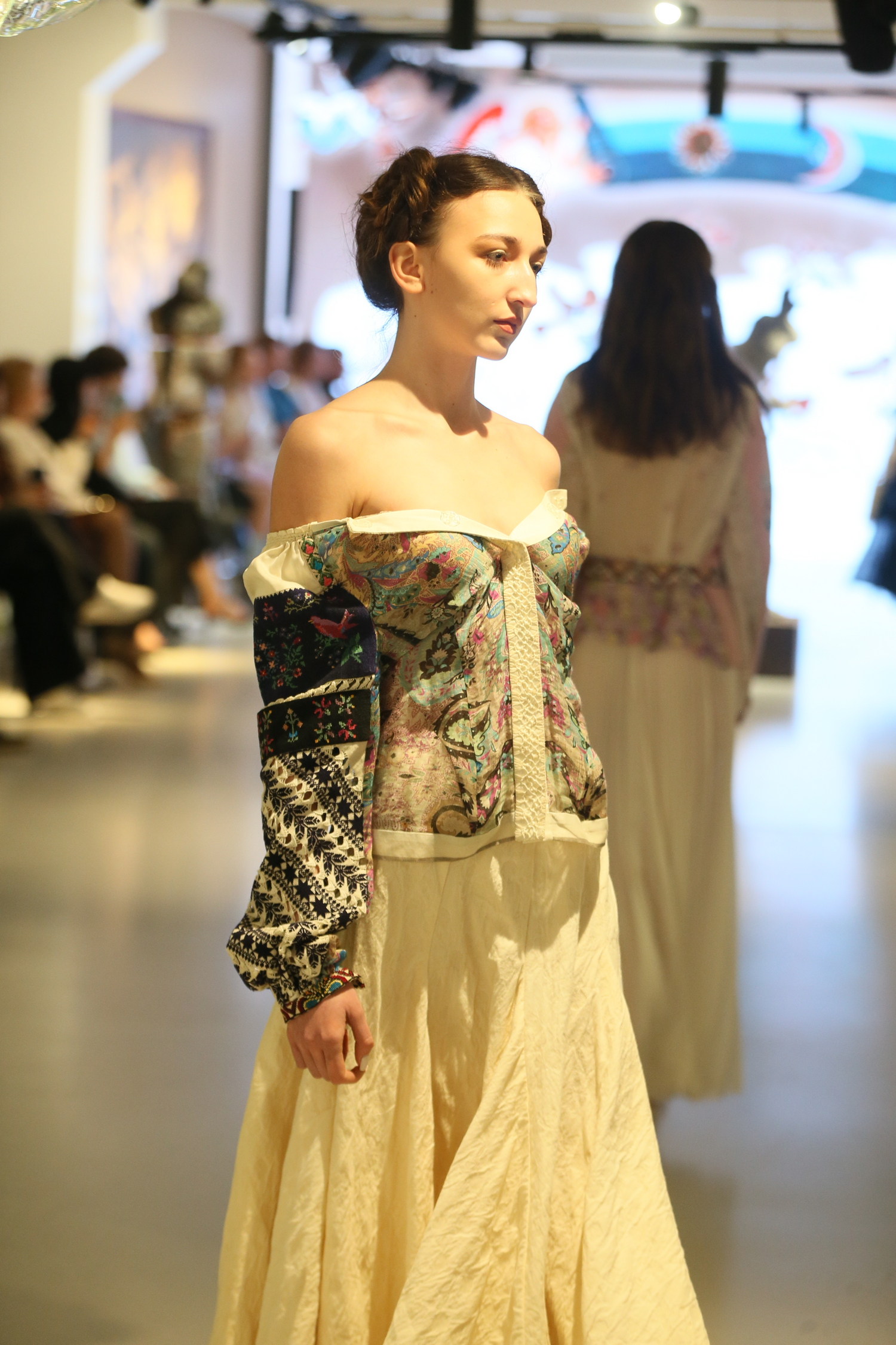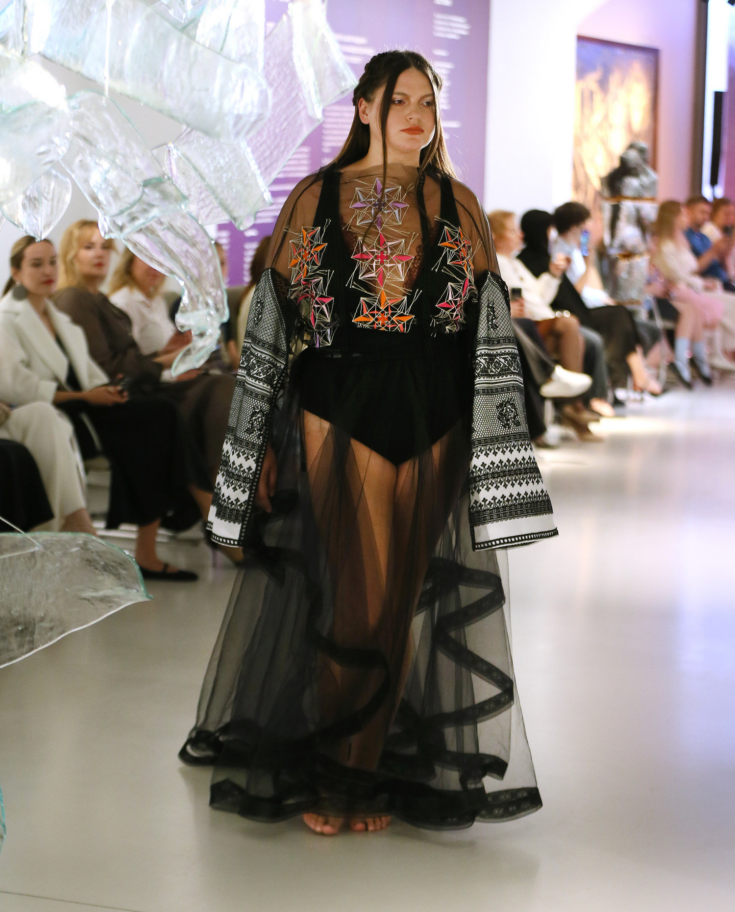 Близько двадцяти моделей не просто дефілювали, а творили сенси та змісти – із проекцією з минулого на теперішнє та майбутнє. У центрі фешн-перформансу – Жінка: світла і темна, пуста і глибока, кокетлива і цнотлива, змінна і вічна. Вона ніколи не буває одновимірною.