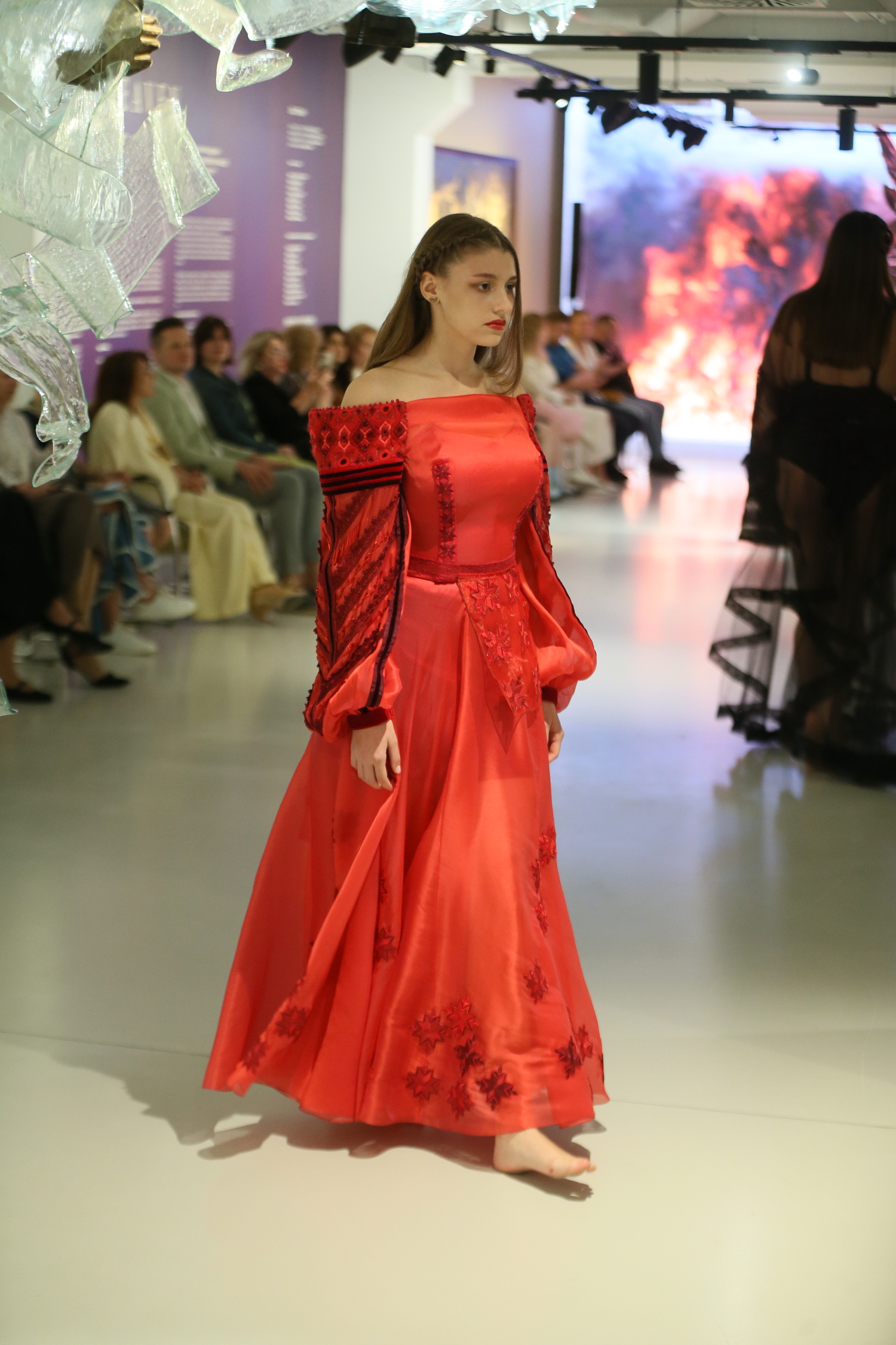 У просторі ZAG GALLERY і її нової експозиції під промовистою назвою «Рай/Пекло», яка поєднує твори Альбрехта Дюрера, Раймонді, голландських майстрів натюрморту XVII ст., голландську графіку XI ст., український іконопис XVI ст. та новітнє українське мистецтво, Оксана Караванська творила мистецький фешн-перформанс на межі жанрів і сенсів. Містика, інтрига, провокація, – усе в стилі дизайнерки, яка любить дивувати й шокувати. «Дюрер. Янголи. Спокусниці» – це не просто фешн-історія. Тут одяг – як обряд, модель – як дух, а галерея – як портал.