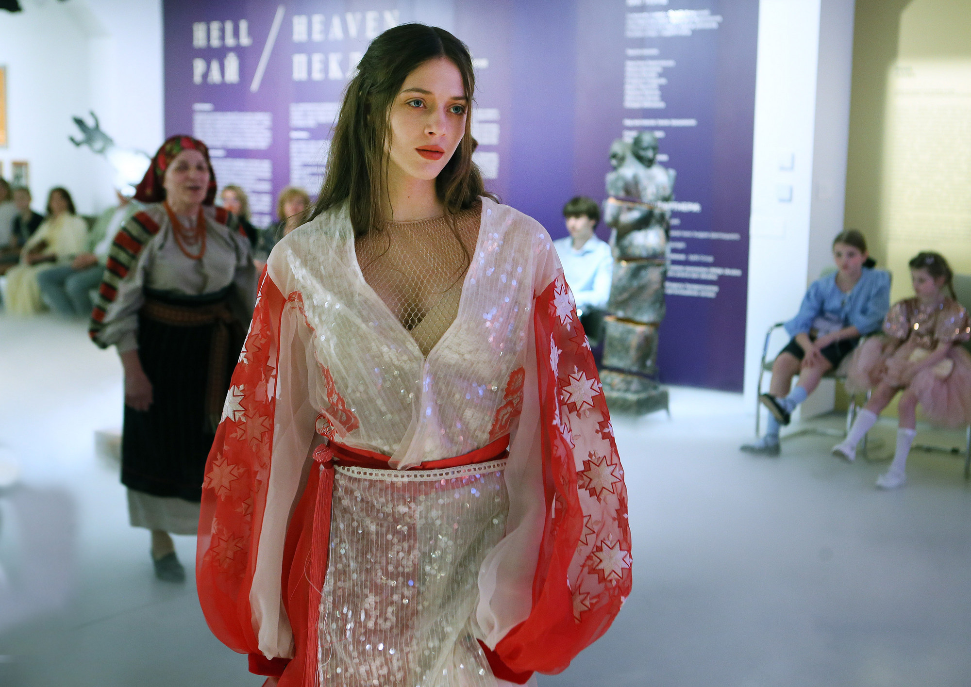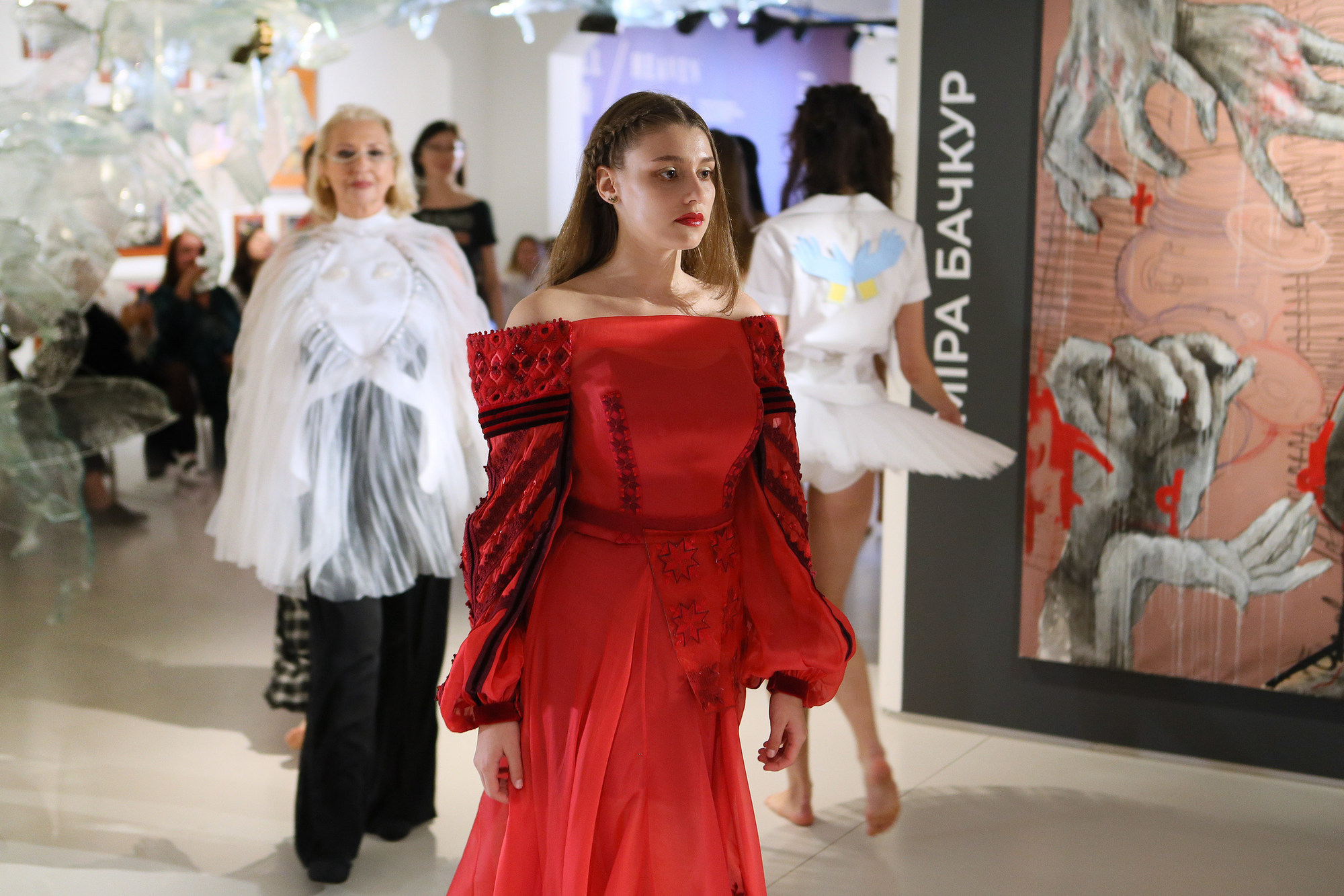 Фешн-перформанс «Дюрер. Янголи. Спокусниці» – це навіть не дійство, а ритуал. Сам одяг від кутюр Караванської перегукується з містичною українською традицією. Авторка епатажних вишивок – Ксенія Уманська. Образи, інтегровані у простір, промовляли, відчували… При глядачах – перших і єдиних свідках цієї живої розмови.