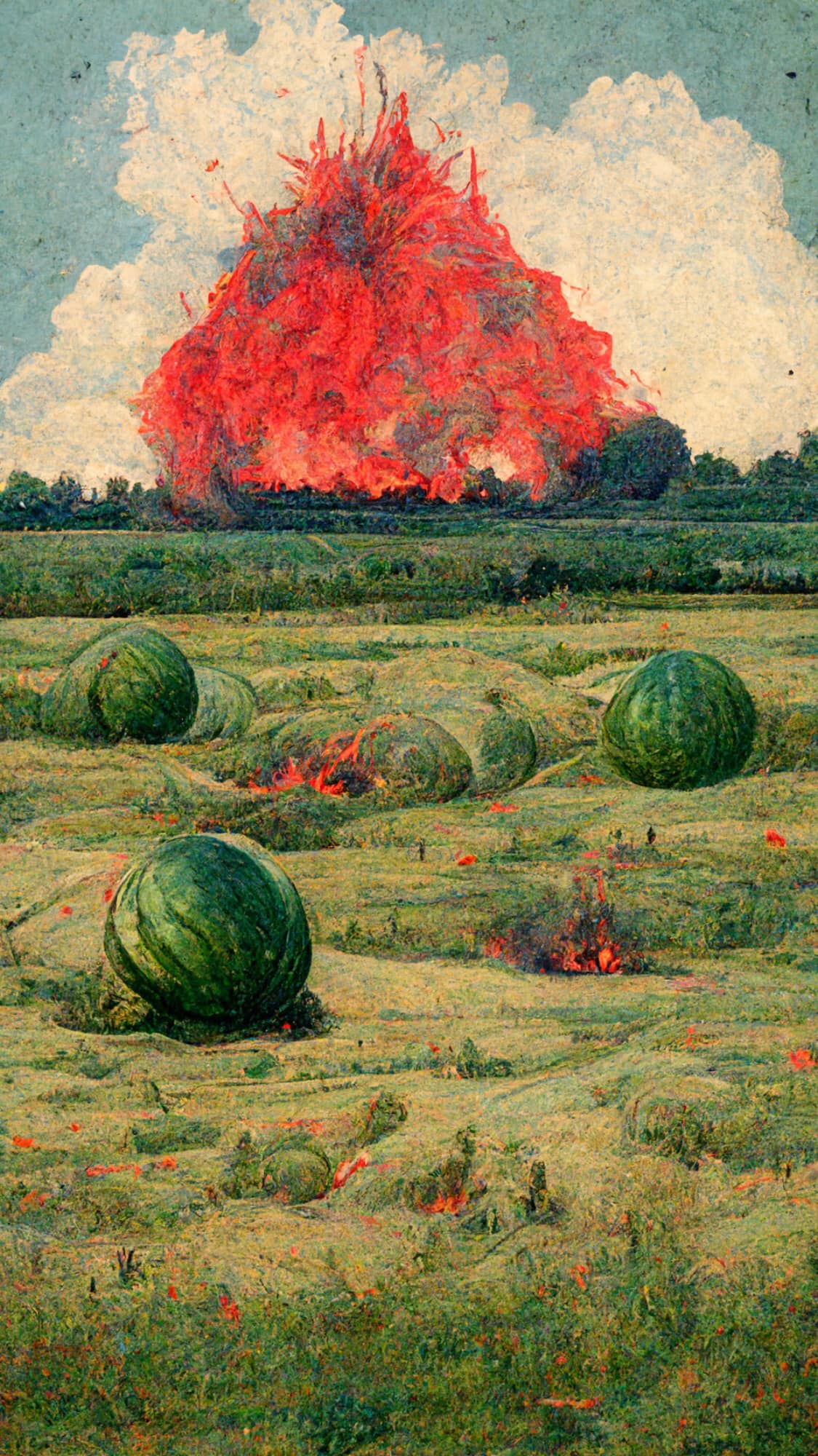 “Серія ЗСУ, як сезон кавунів — уже на підході! Думали, зі штучним інтелектом, які можуть бути листівки з Херсона”, — підписала художниця свою серію робіт у дописі.