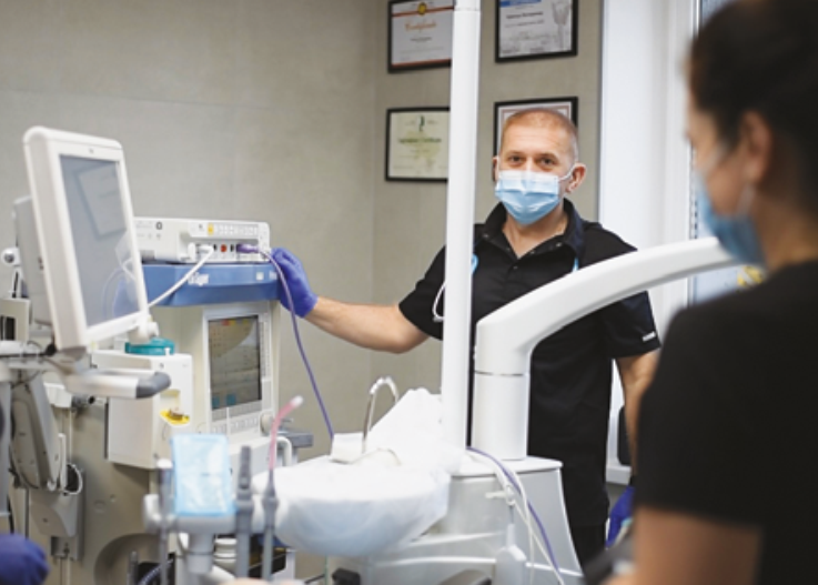 Yeremchuk Dental працює з наркозним апаратом Drager Primus — приладом рівня реанімаційного відділення. Він дає змогу точно контролювати дихання, насичення киснем і всі життєві показники.