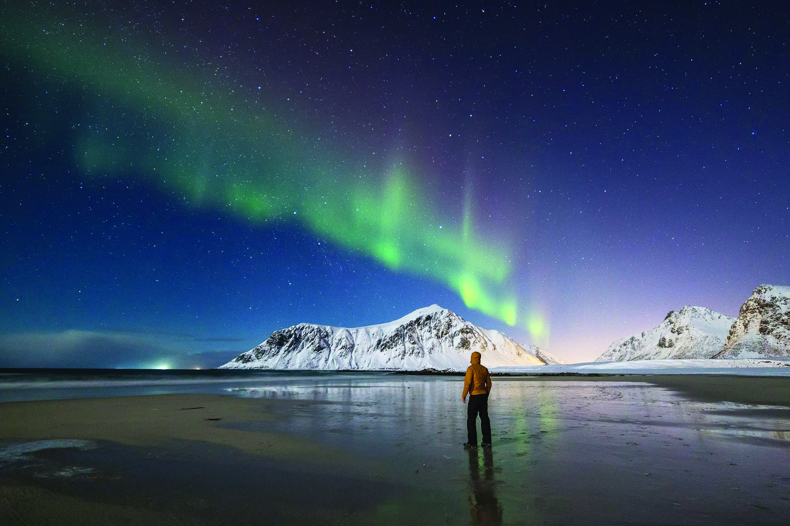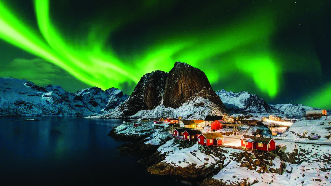 Та чи не найяскравішим враженням від зимової Норвегії стане північне сяйво. Мандрівник каже, що жодне відео чи фото не може повністю передати його краси. Відчути всю грандіозність цього природного шоу можна лише, побачивши на власні очі. Власне тому й радить Лофотенські острови, де, так би мовити, «все включено» — і сяйво, і найкрасивіші ландшафти.