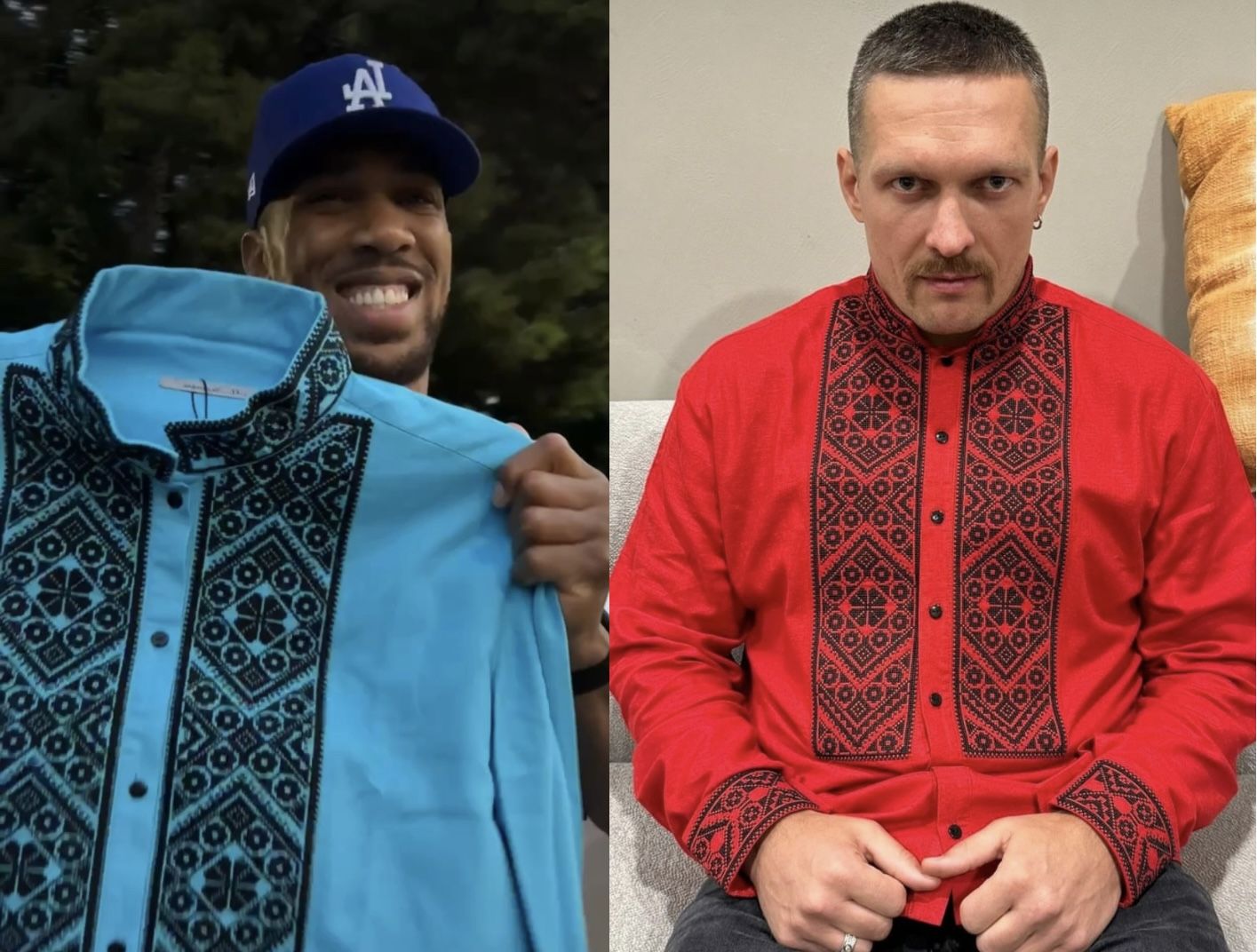 Чемпіон світу у надважкій вазі за версіями WBC, WBA та IBF Олександр Усик подарував своєму колишньому супернику Ентоні Джошуа красиву вишиванку лазурового кольору з чорним вишиттям.